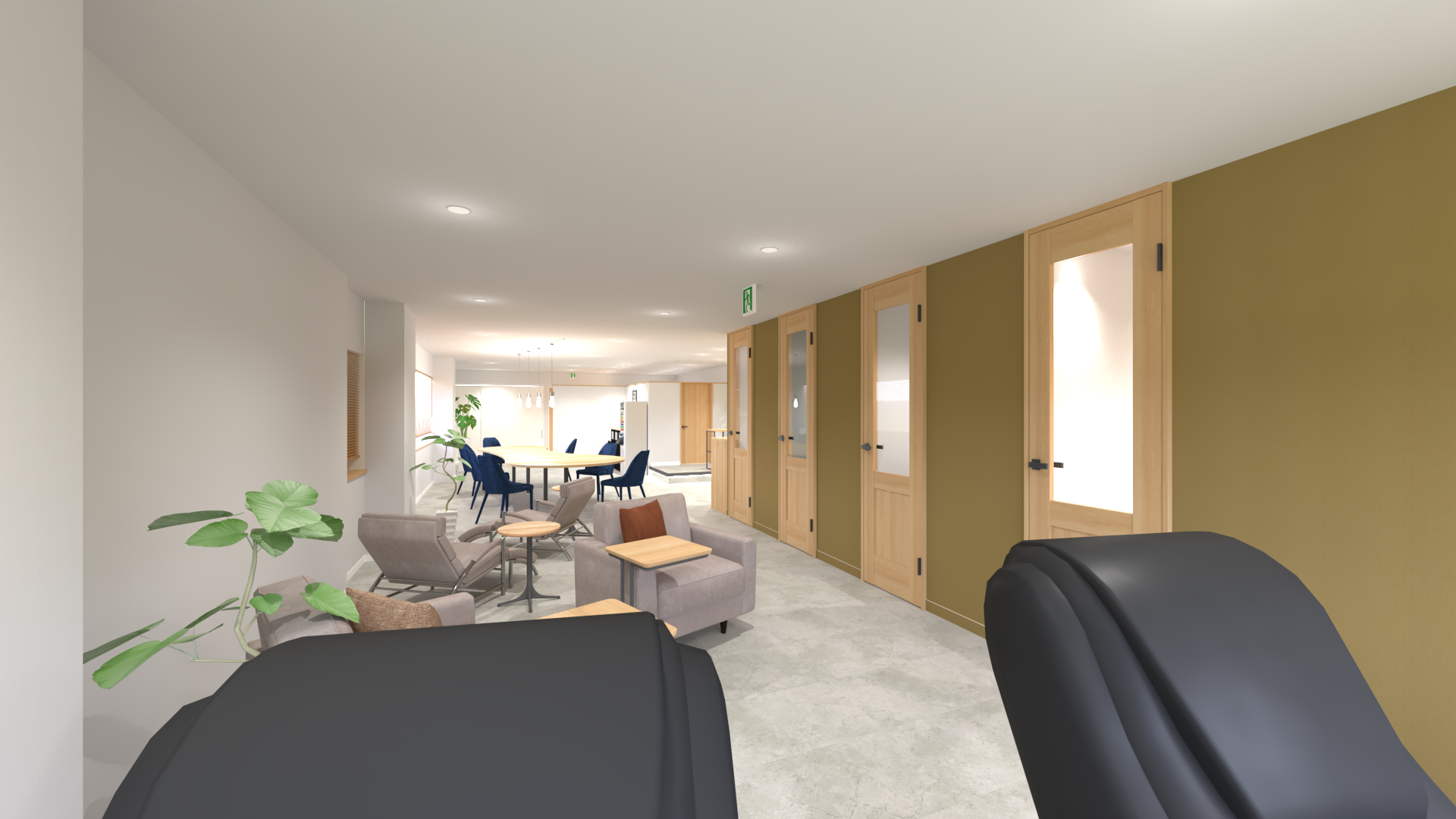 更にはリラクゼーションスペースとしてマッサージチェアを置かれたいとの事。