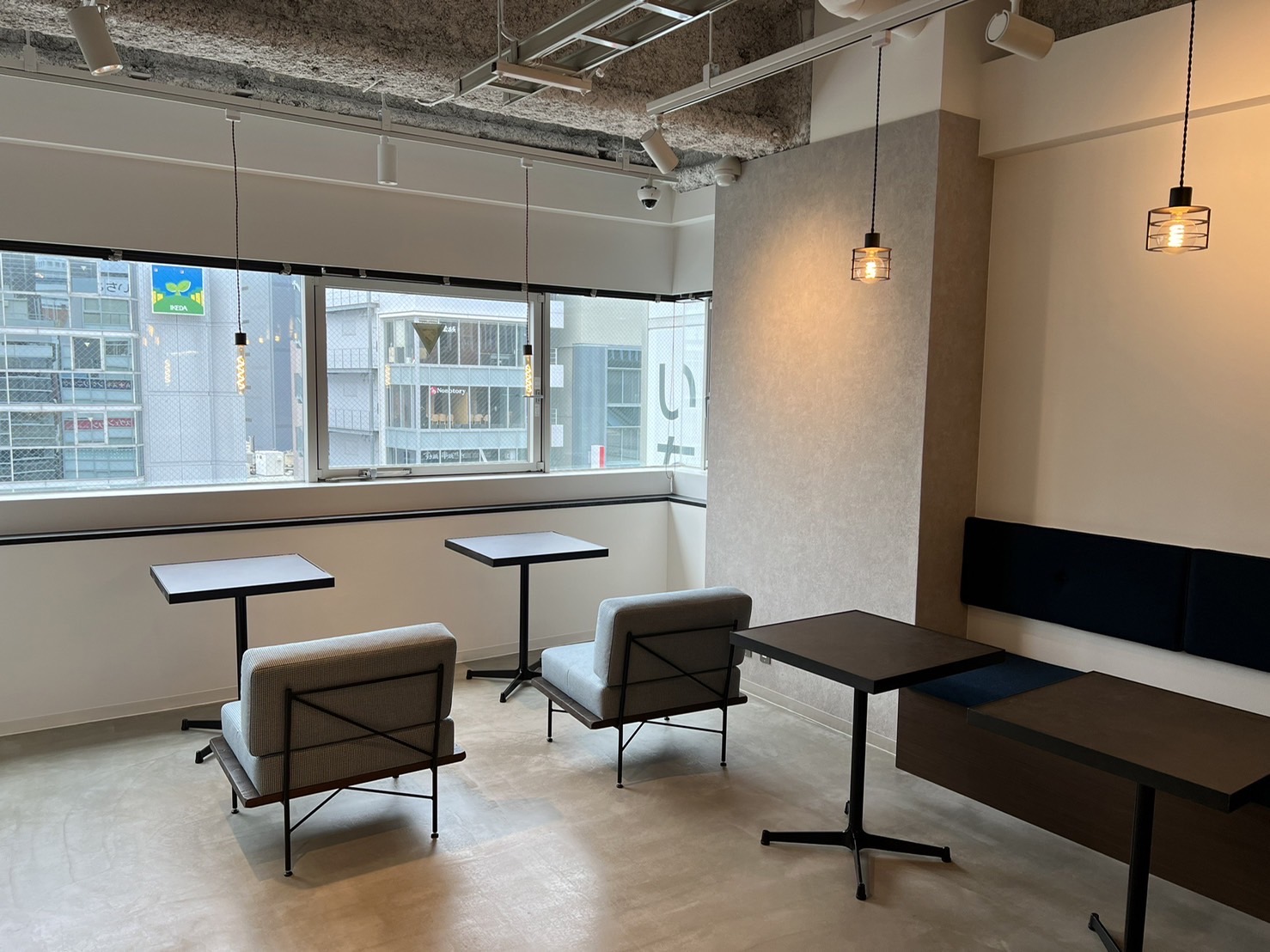 なんばの御堂筋沿いという好立地に加え、休憩スペースとは思えないフロア。