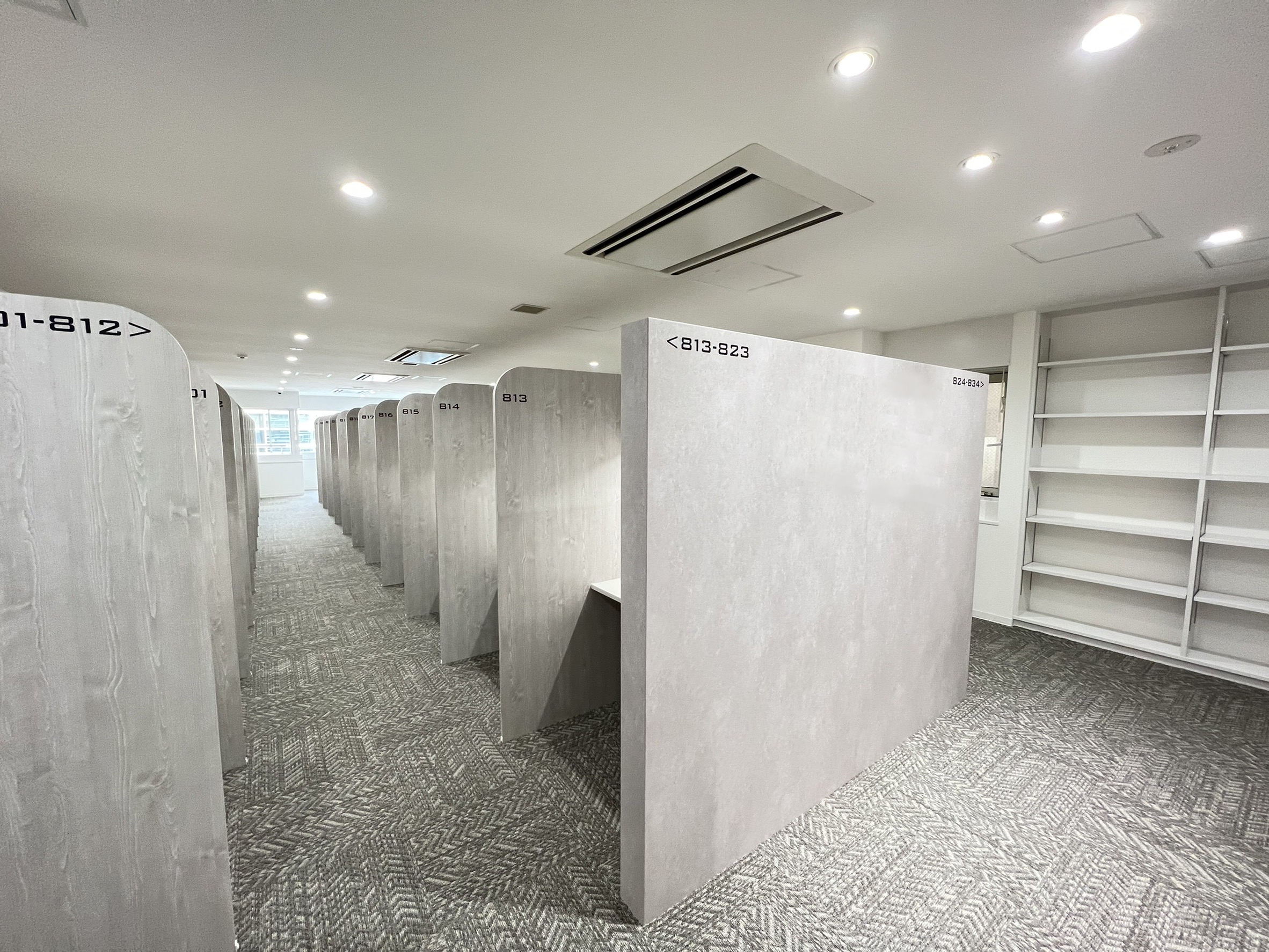 さて、前回は9階の休憩スペースと、7階の自習室のブースの様子をご覧いただいたのですが、その後どんな感じに進んでいるんでしょう。